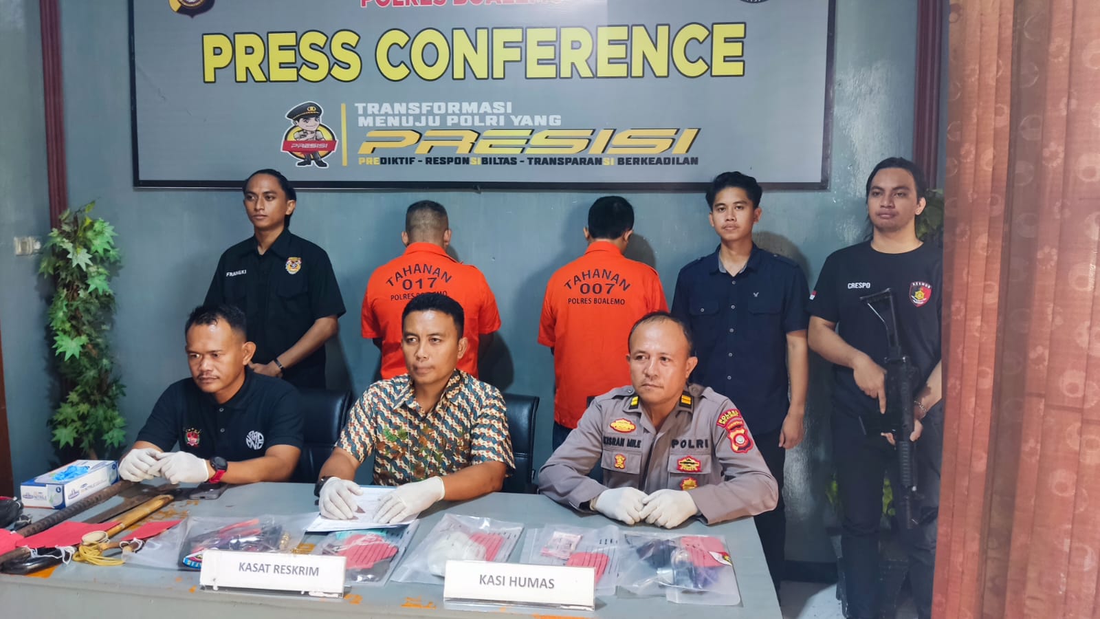 “Dua orang pelaku kami amankan di salah satu penginapan di Desa Tangkobu pada Selasa (28/10/2025) sekitar pukul 01.00 Wita tanpa perlawanan,” ungkap Kasat Reskrim Polres Boalemo IPTU Nurwahid Kiay Demak, S.H., M.H., dalam konferensi pers, Jumat (31/10/2025).